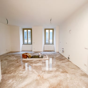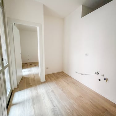 Si è partiti da un'immobile diviso in 2 unità. La prima si presenta come un grande open space, mentre la seconda, affacciata sul cortile interno, si sviluppa in un piccolo bilocale, per un totale di 164 mq.