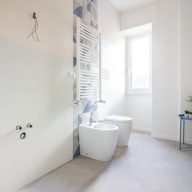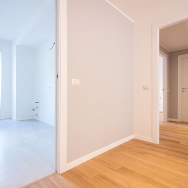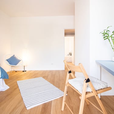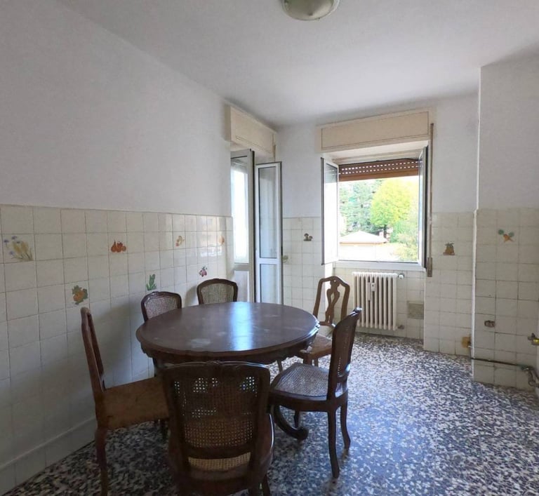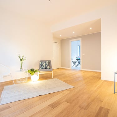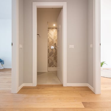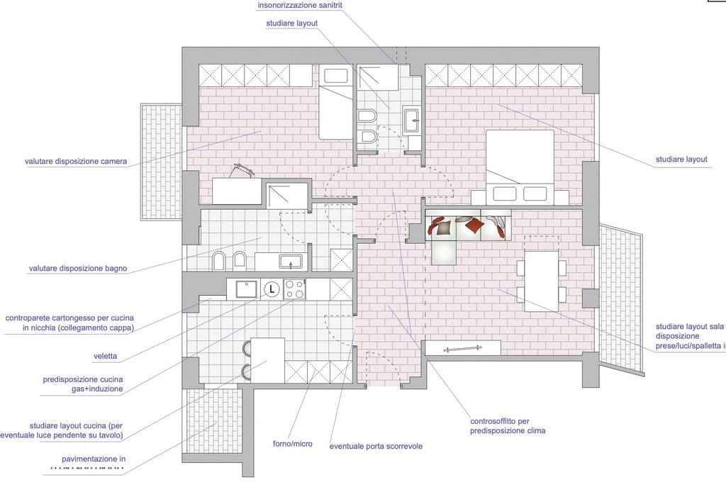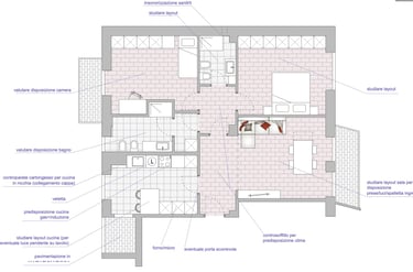 Si è trattato di un intervento di totale ristrutturazione di un appartamento estremamente datato, conservato nello stato originale. Siamo riusciti a mantenere buona parte dell'impianto planimetrico originale, abbattendo la parete dell'ingresso, in modo da ampliare la sala e renderla più luminosa, ed è stato progettato un secondo bagno, sfruttando la presenza di uno sgabuzzino poco funzionale.