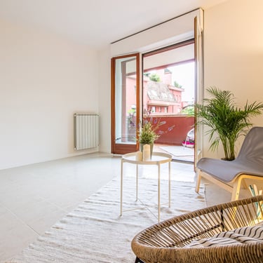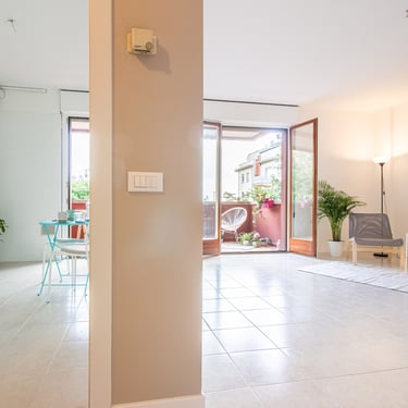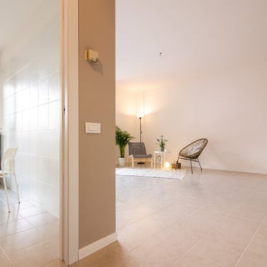 Quindi non sono stati fatti interventi di ristrutturazione invasivi. Sono state sostituite le porte interne e tutti gli zoccolini con porte e zoccolini bianche che hanno donato all'appartamento un immagine più moderna.