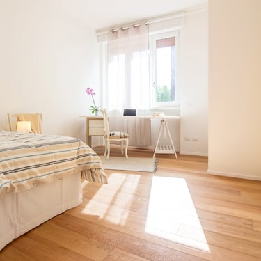 E' stato inserito il parquet in tutti gli ambienti, a esclusione dei due bagni.