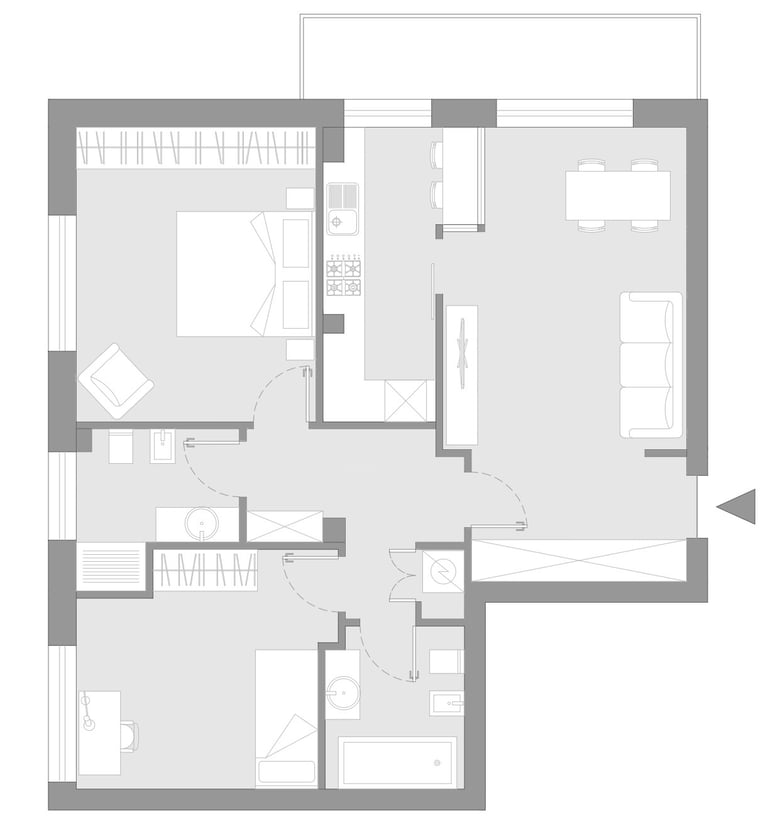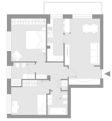 Si è trattato di un intervento di totale ristrutturazione di un appartamento in pessime condizioni manutentive. E' stato riprogettato l'impianto planimetrico in modo che si adattasse alle attuali richieste di mercato. Abbiamo ingrandito la sale e inserito il secondo bagno cieco, creando cosi un trilocale con doppi servizi molto appetibile sul mercato.