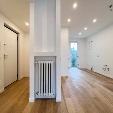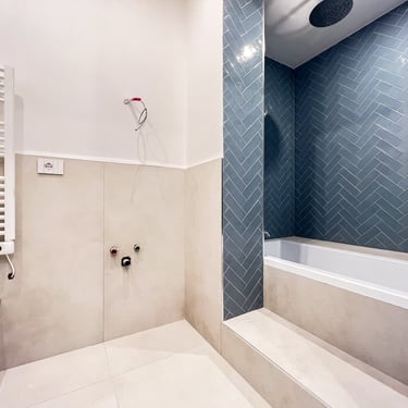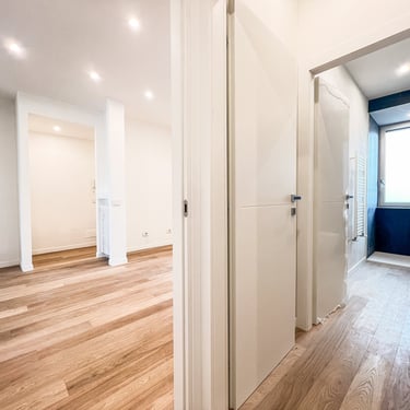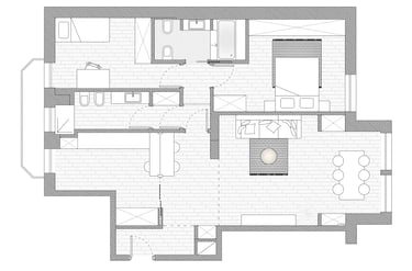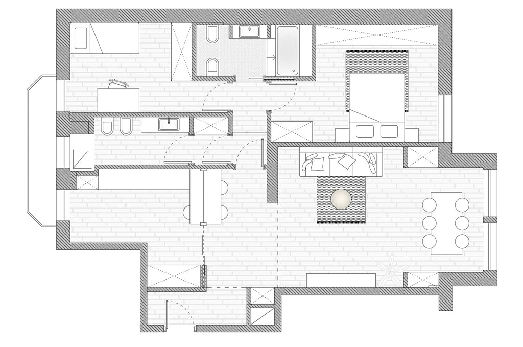 Si è trattato di un intervento di totale ristrutturazione di un appartamento estremamente datato, conservato nello stato originale. E' stato totalmente riprogettato l'impianto planimetrico in modo che si adattasse alle attuali richieste di mercato, quindi demolendo e spostando i tramezzi, si è riuscito a ottenere un ampio trilocale con una funzionale cucina a vista e doppi servizi con doccia e vasca da bagno.