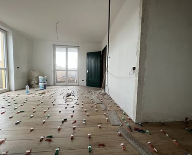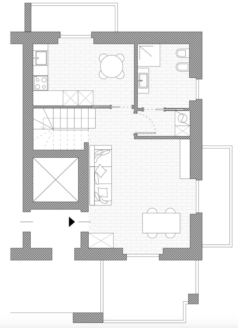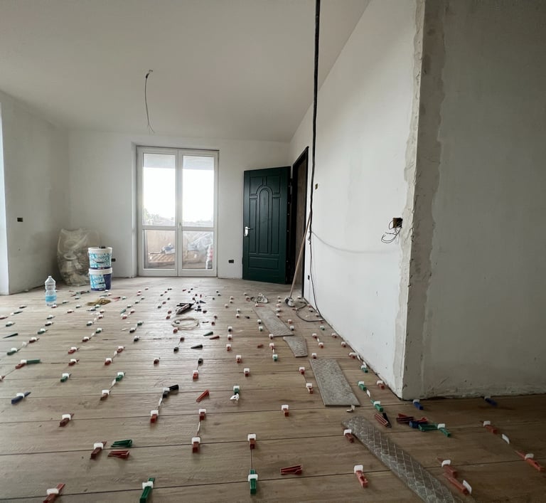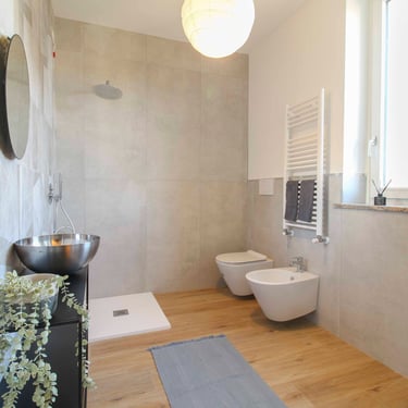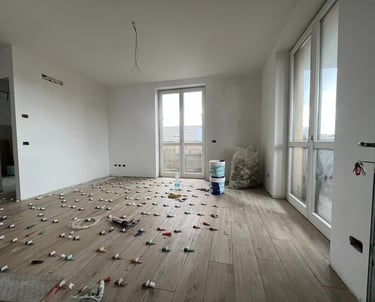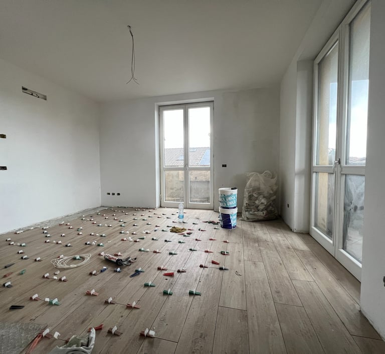 Si è deciso altresi di intervenire sull'estetica interna dell'appartamento, rifacendo le finiture interne, come il pavimento di tutto l'appartamento, uniformando entrambi i piani e la piastrellatura del bagno