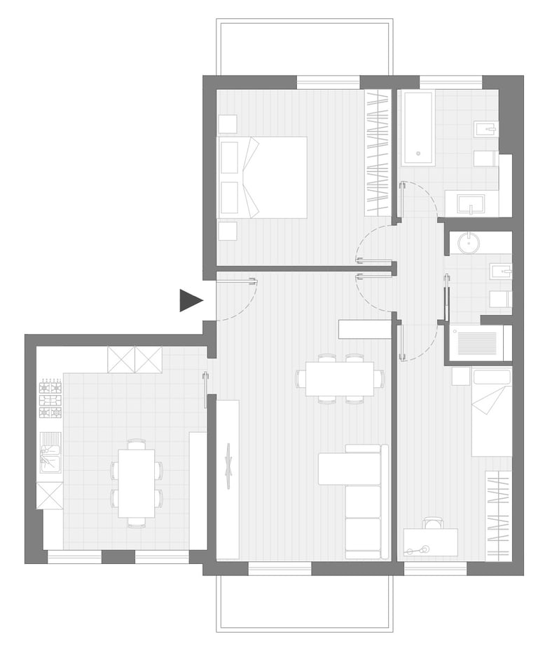 Si è trattato di un intervento di parziale ristrutturazione di un appartamento che si presentava allo stato originale. E' stato rifatto il bagno principale e realizzato un secondo bagno cieco, ampliando lo sgabuzzino esistente. Sono state sostituite tutte le porte interne ed è stato posato il parquet in tutto l'appartamento a eccezione dei bagni e della cucina.